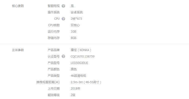 CQC16701158759产品型号LED50G30UE产品颜色黑色产品类型4K超清电视推荐观看距离(米)2.5m-3m(46-55英寸)上市日期2018年能效等级2级