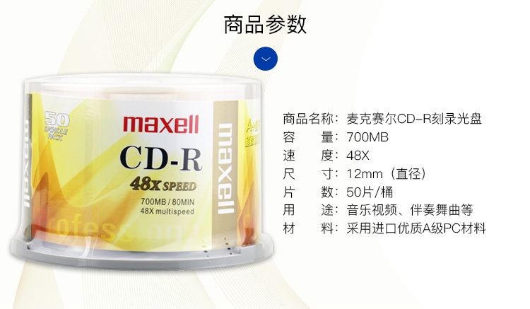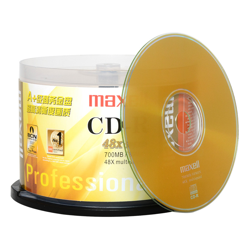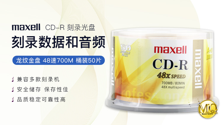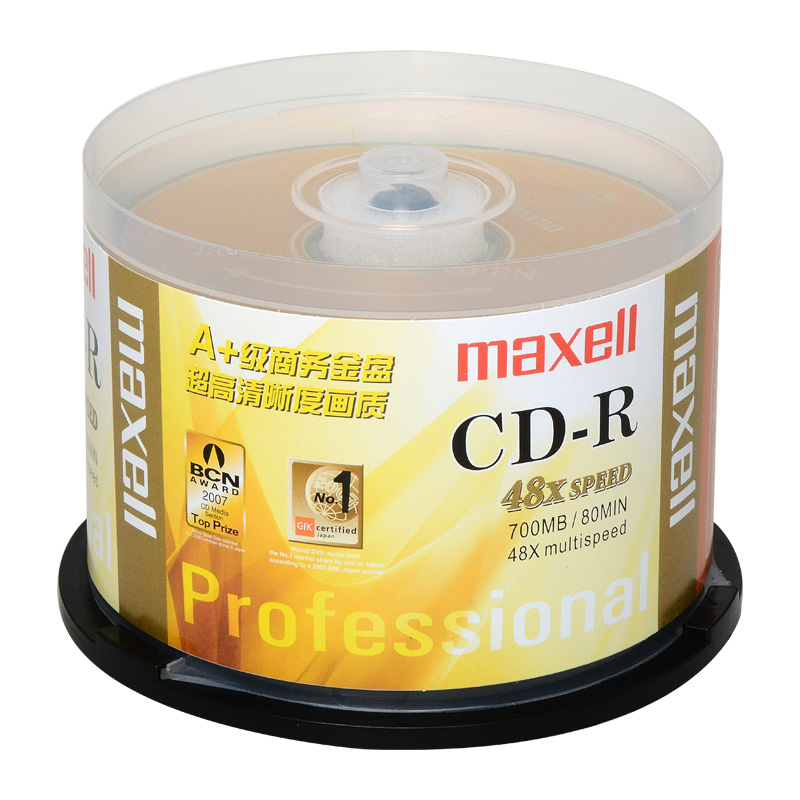 麦克赛尔(maxell)CD-R光盘 刻录光盘 光碟 空白光盘 48速700M 商务金盘 50片