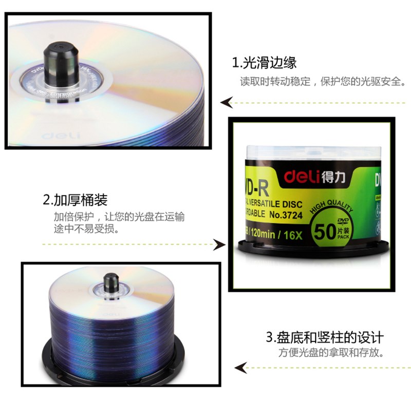 得力(deli)3724 DVD光盘 DVD-R刻录光盘/光碟/空白光盘/刻录盘 4.7G 50片/筒