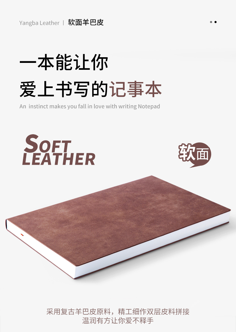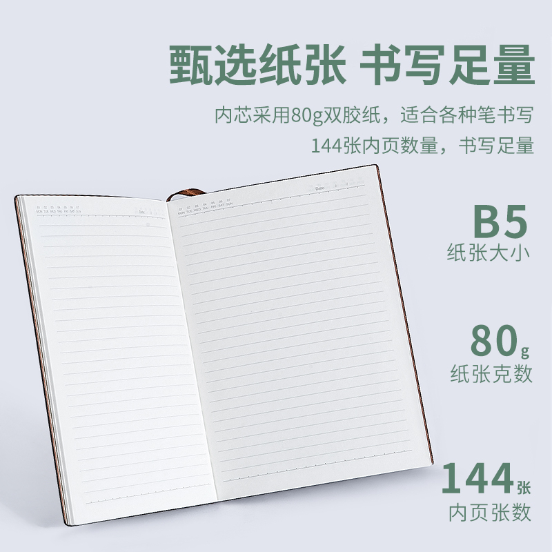 广博(Guangbo)羊巴皮记事本 加厚软面日记本 皮面本 本子 笔记本 B5/144张 咖啡/灰色可选 GBP20065-DK