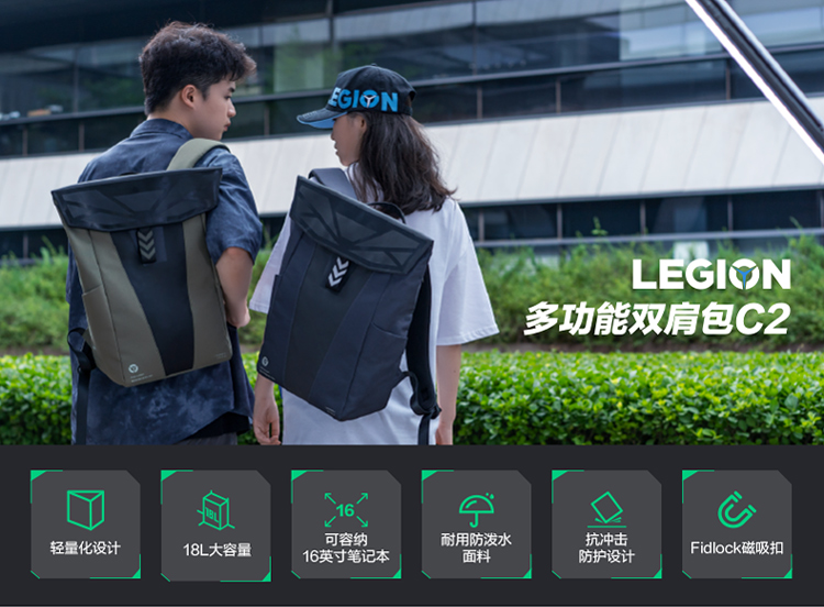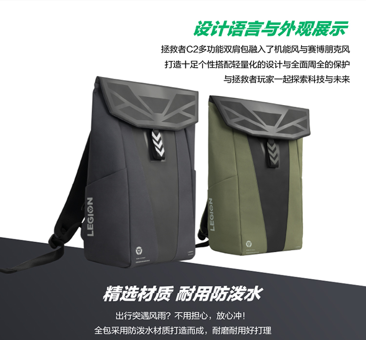 联想(Lenovo)拯救者电脑包 笔记本双肩包 C2 夜潜绿 大容量旅行包 男女背包 学生书包